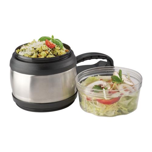 You can effortlessly carry your food with this stainless steel lunch box (600ml capacity) with practical handle - it will stay warm for a long time thanks to its double-walled isolation. The transparent compartment at the bottom offers further storage space for other food (320ml capacity).