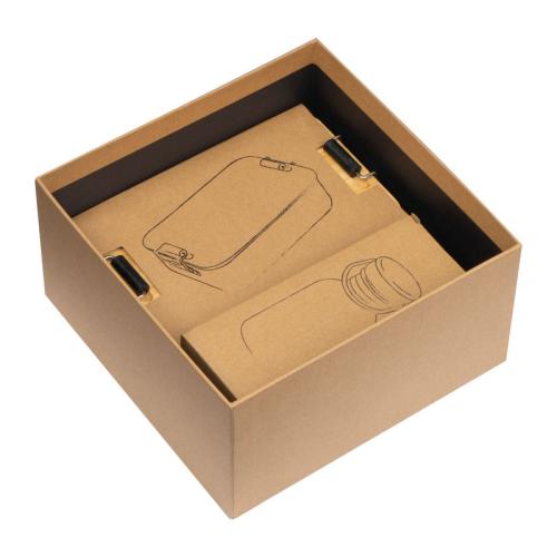 Gift set in cardboard packaging, consisting of a lunch box made of aluminium with a bamboo lid and a drinking bottle made of stainless steel with a capacity of 300 ml.