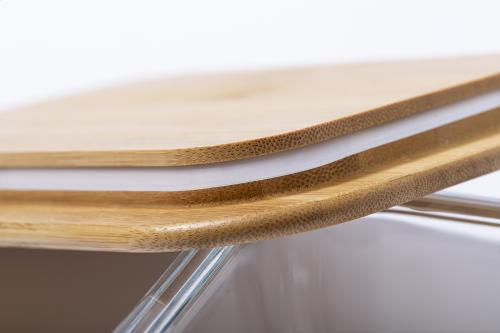 Glass lunch box with natural bamboo lid. With bamboo cutlery set (knife, fork and spoon) and elastic strap, 500 ml.