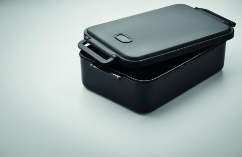 Large PP lunch box with airtight lid, silicone valve and two side clasp closure. Capacity: 2200 ml.