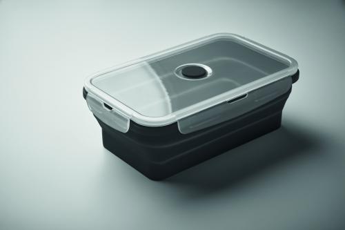 Collapsible silicone lunch box with PP lid and silicone valve. Capacity: 1200 ml.