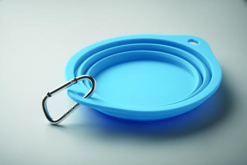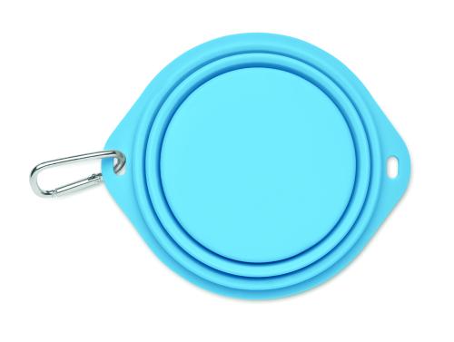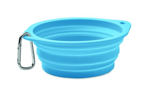 Collapsible portable silicone single drinking or food pet bowl with carabiner. Capacity: 350ml.