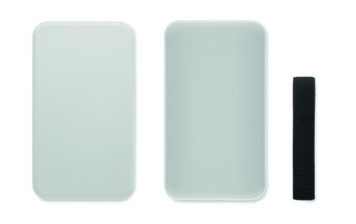 Lunch box in PP with RPET elastic band closure. Capacity: 750 ml.