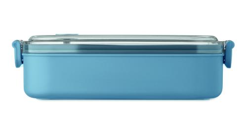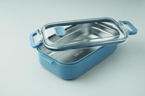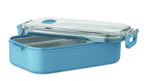 Lunch box made of PP with additional recycled stainless steel inner layer. Airtight AS lid that keeps food fresh and secure during transport. Capacity 750 ml without tray and 650 ml with tray.