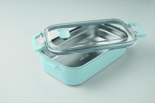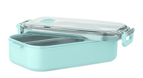 Lunch box made of PP with additional recycled stainless steel inner layer. Airtight AS lid that keeps food fresh and secure during transport. Capacity 750 ml without tray and 650 ml with tray.
