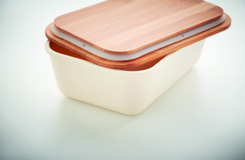 Lunch or sandwich box in PP with bamboo lid. Bamboo is a natural product, there may be slight variations in colour and size per item, which can affect the final decoration outcome.