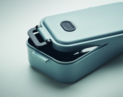 PP lunch box with airtight lid, silicone valve and two side buckles. Capacity: 800 ml.
