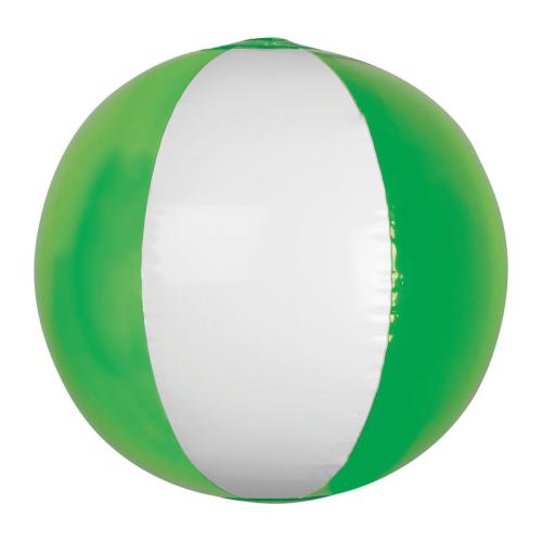Bicolour beach ball made of PVC with white and coloured-transparent segments.