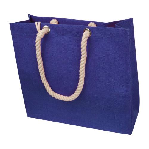 Large, coloured jute bag with drawstring, your ideal shopping companion.