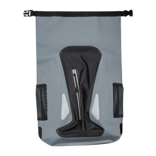 Waterresistant backpack made of 600D PVC with a filling capacity of 30 liters and reflective surfaces, padded shoulder straps, drinks compartment and several compartments in the interior. The perfect companion in any weather.