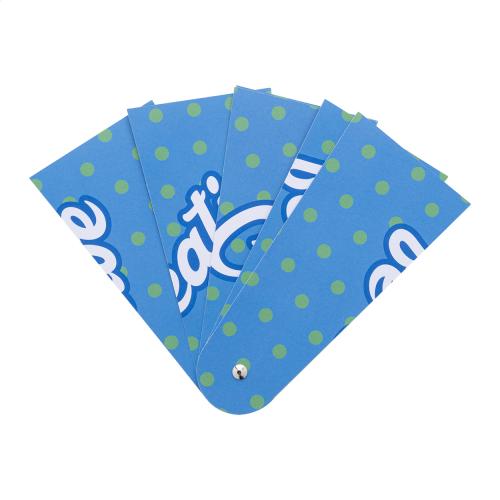 Custom made, foldable paper hand fan with full colour graphics. Price includes digital printing on both sides. MOQ: 100 pcs.
