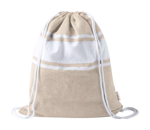 Recycled cotton, two-tone pareo beach towel with matching drawstring carry bag. 100% recycled cotton, 170 g/m².