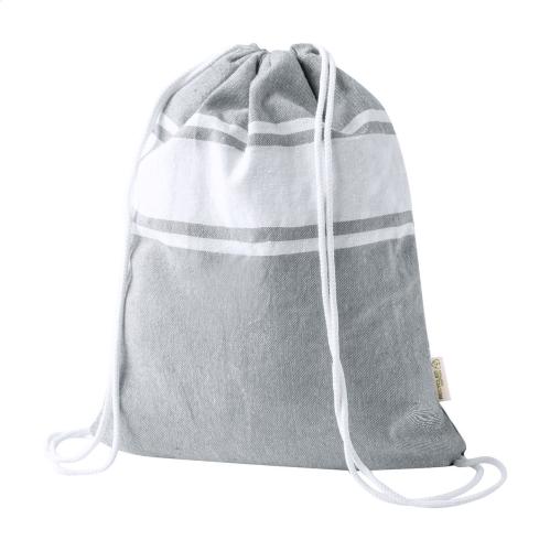 Recycled cotton, two-tone pareo beach towel with matching drawstring carry bag. 100% recycled cotton, 170 g/m².