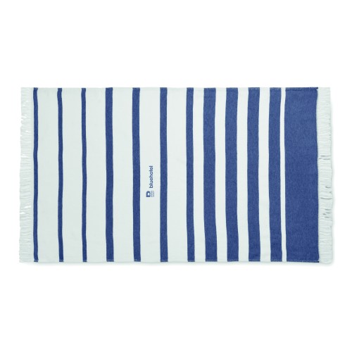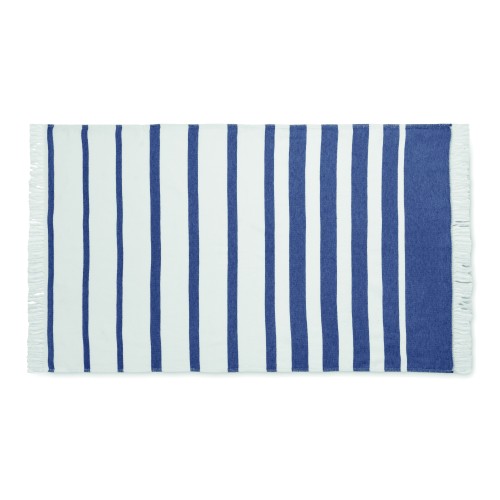 Recycled fabrics hammam or beach towel. 70% recycled cotton and 30% recycled polyester SEAQUAL® YARN. 300 gr/m². 100x170 cm. SEAQUAL INITIATIVE works with ocean clean-ups around the world to bring value to the waste that hey recover. Made in EU.