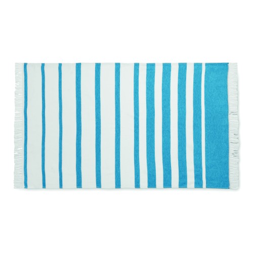 Recycled fabrics hammam or beach towel. 70% recycled cotton and 30% recycled polyester SEAQUAL® YARN. 300 gr/m². 100x170 cm. SEAQUAL INITIATIVE works with ocean clean-ups around the world to bring value to the waste that hey recover. Made in EU.