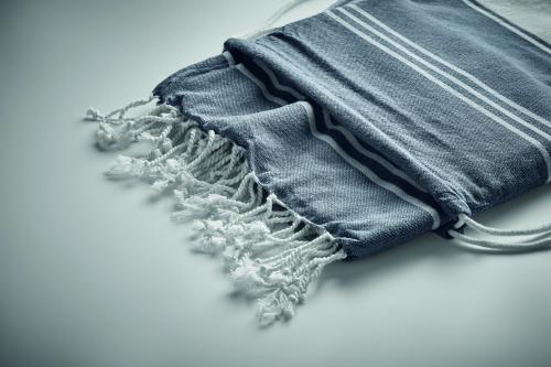 Set of hammam beach towel with drawstring bag. 70% cotton and 30% polyester 180 gr/m². 90x160 cm.