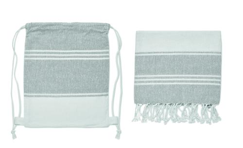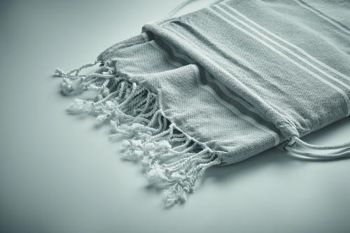 Set of hammam beach towel with drawstring bag. 70% cotton and 30% polyester 180 gr/m². 90x160 cm.