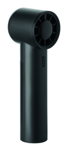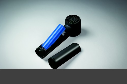 Mini handheld fan in ABS with screen display and 5 speed settings. Includes replaceable 2600mAh rechargeable lithium battery.