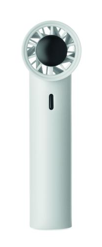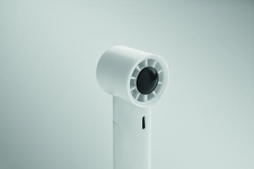 Mini handheld fan in ABS with screen display and 5 speed settings. Includes replaceable 2600mAh rechargeable lithium battery.