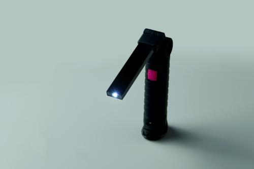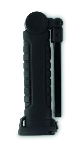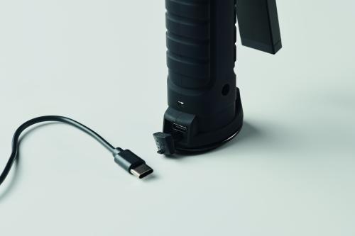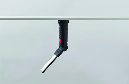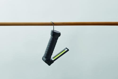 Aluminium rechargeable 1200mAh work light with 270° rotatable body. Features bright inspection light, side COB light with 2 settings, hanging hook and magnetic base. Charging cable included.