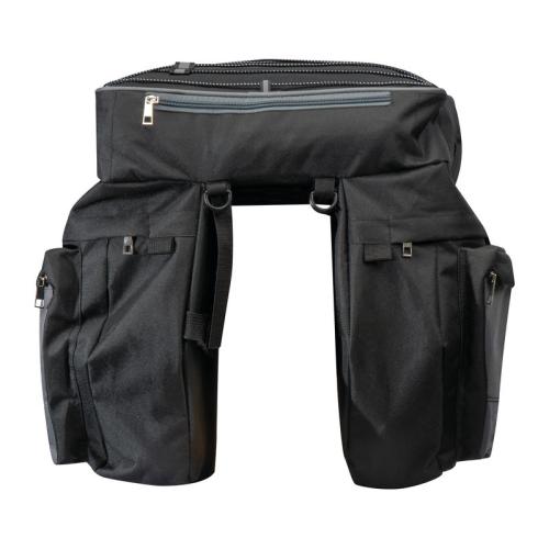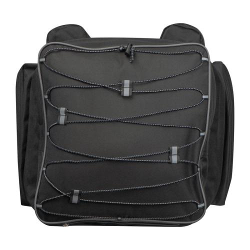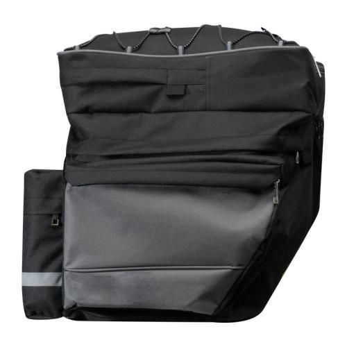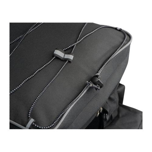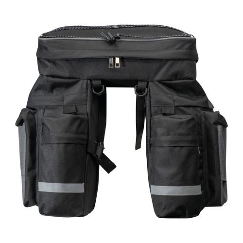 High-quality, large bicycle saddle bag that is attached to the luggage rack. With many functions such as elastic straps and several compartments to stow away.