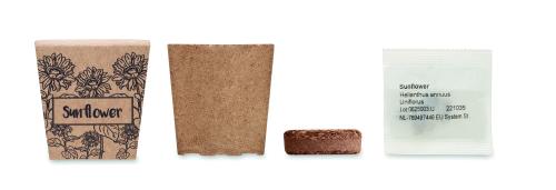 Biodegradable peat pot with sunflower seeds (Helianthus debilis). Made in EU. Not available for sale in the UK. Soil tablet included.
