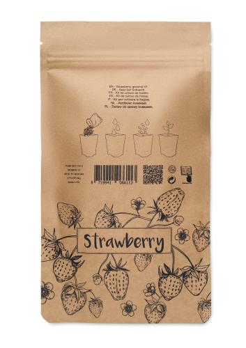 Strawberry growing kit including garden compost in a paper packaging. Made in EU.