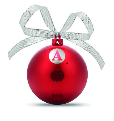 5.0 wireless christmas bauble speaker in ABS. Easy connection with any wireless enabled device . Rechargeable Li-ion 300mAh battery. Includes USB charging cable. Output data: 3W and 4 Ohm. Operating range: 10 m.