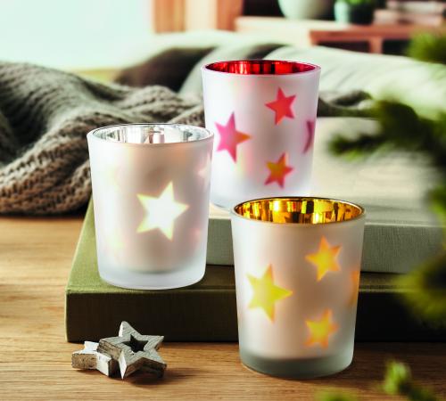 LED tea light in PP candle in glass jar. 1 button cell CR2032 battery included.