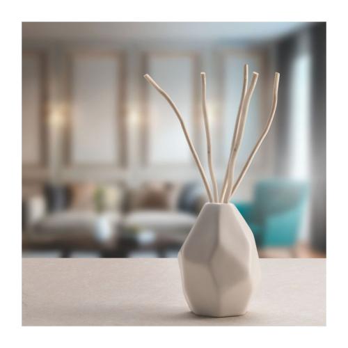 Decorate your interior with this designer diffuser with a pleasant scent of gardenia and white tea. The ceramic vase has a very elegant appearance and contains 3 pcs of white reed sticks and 2 pcs of polyester fiber sticks for a more intense scent. The length of the sticks is approx. 21 cm. The volume of the perfume oil bottle is 100 ml. Packed in a Vanilla Season gift box.