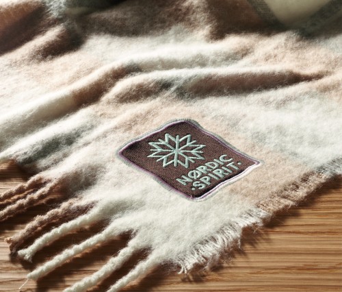 Chequered design mohair feel RPET polyester blanket with hand-rolled fringes. Wrapped in ribbon and printable card.