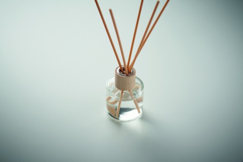 Glass jar with wooden fragrance diffuser with 6 reed stick. Fragrance: vanilla. Capacity: 50ml.