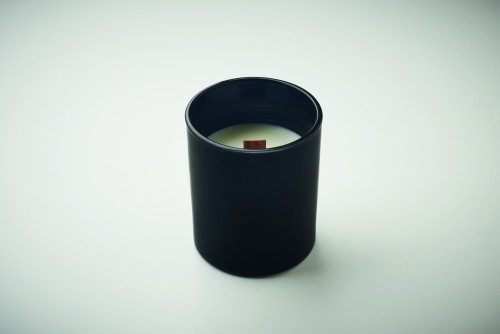 Vanilla fragranced plant based wax candle 80 gr in glass with wooden wick. Burning time 14 hours