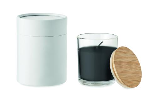 Vanilla fragranced plant-based wax candle 120gr in glass with a bamboo lid, presented in a paper tube gift box. Make the house smell nice with this vanilla scented candle. Close the candle off with the bamboo lid when you are not using it to make it a more natural looking decoration. Burn time: 20 hours. Bamboo is a natural product, there may be slight variations in colour and size per item, which can affect the final decoration outcome.
