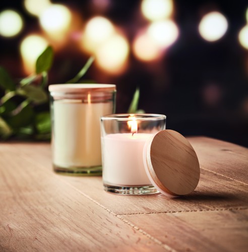 Vanilla fragranced plant-based wax candle 120gr in glass with a bamboo lid, presented in a paper tube gift box. Make the house smell nice with this vanilla scented candle. Close the candle off with the bamboo lid when you are not using it to make it a more natural looking decoration. Burn time: 20 hours. Bamboo is a natural product, there may be slight variations in colour and size per item, which can affect the final decoration outcome.