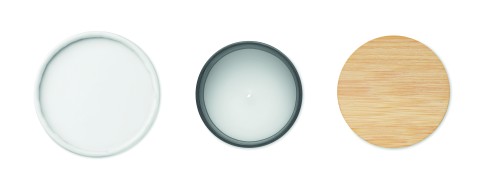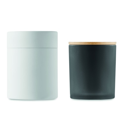 Fragranced plant based wax candle in frosted glass jar holder with bamboo lid. 280 gr. Burn time: 46 hours. Presented in a paper tube gift box. Bamboo is a natural product, there may be slight variations in colour and size per item, which can affect the final decoration outcome.