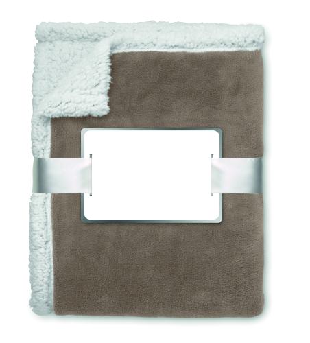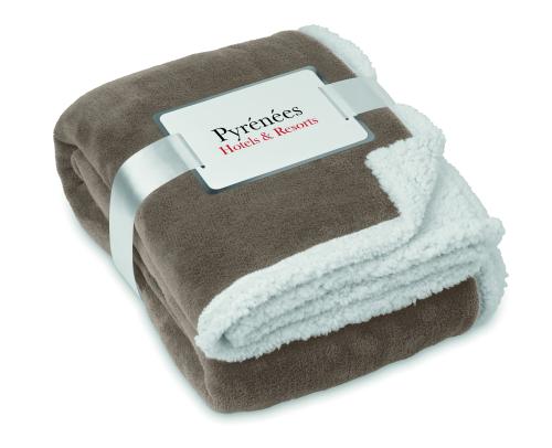 200 gr/m² coral fleece blanket with reversible 220 gr/m² polyester sherpa lining. Wrapped in ribbon and printable card.