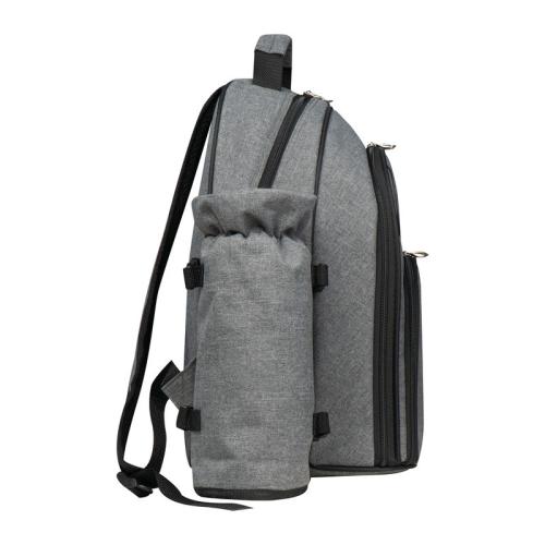 Picnic backpack consisting of four plates, glasses, cutlery, a salt shaker, a pepper shaker, a picnic blanket and a bottle holder.