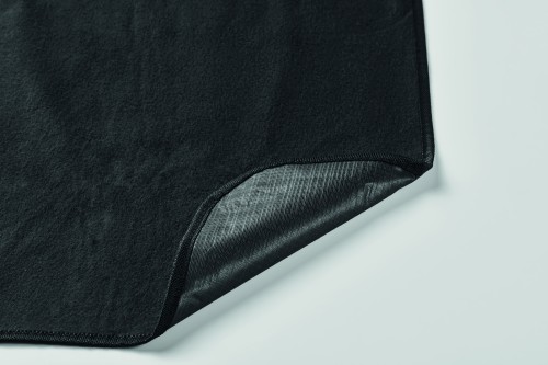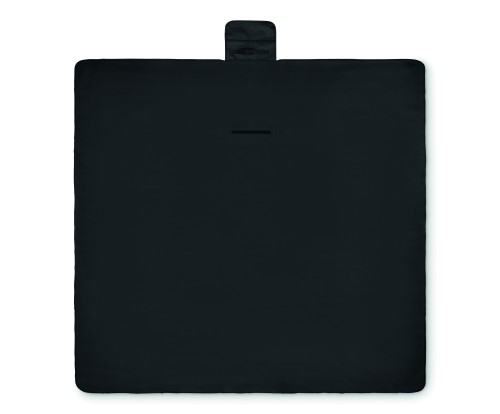 Foldable RPET 150 gr/m² (68% recycled polyester/32% regular polyester) polar fleece picnic blanket with water resistant coated PEVA reverse side. Front flap with zippered pocket and handle.