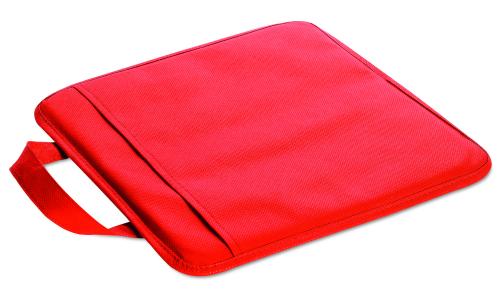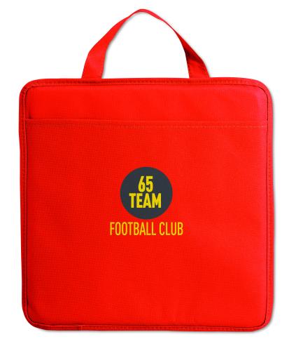 Nonwoven stadium cushion with a pocket.