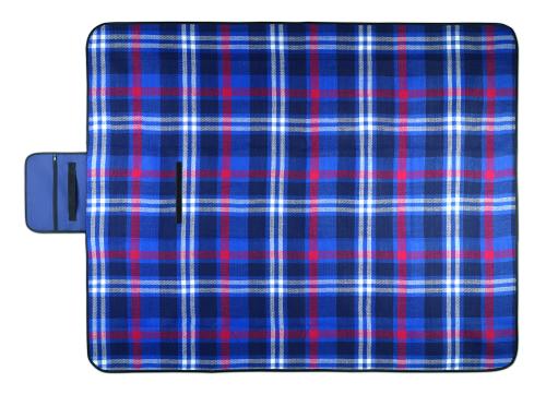 Foldable acrylic picnic blanket with water resistant coated EPE reverse side.