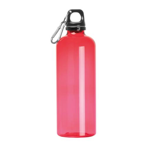 Drinking bottle made of plastic (PET) with leak-proof closure, aluminium carabiner and a capacity of 600 ml.