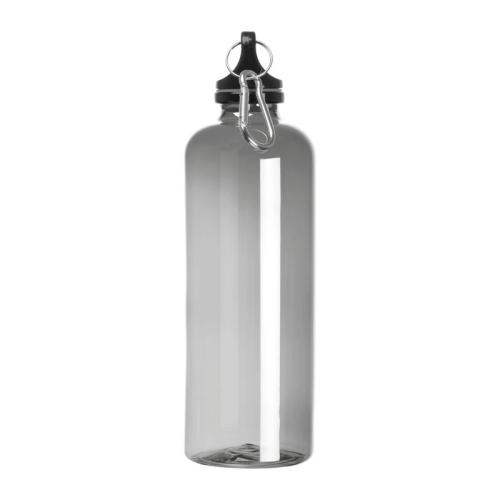 Drinking bottle made of plastic (PET) with leak-proof closure, aluminium carabiner and a capacity of 600 ml.