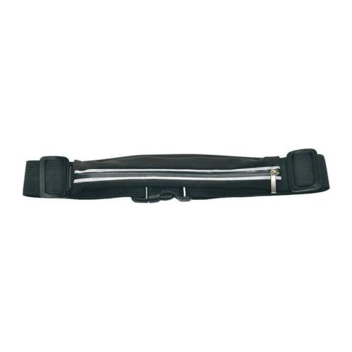 Elastic water resistant belt with flexible pocket and carbine, waterproof zipper. Included reflective parts and integrated output for headphones.
