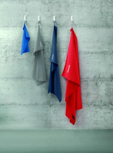 Microfibre towel made of 90% polyester and 10% polyamide with elastic hanger loop. Lightweight and quick drying. Size 100 cm x 150 cm.
