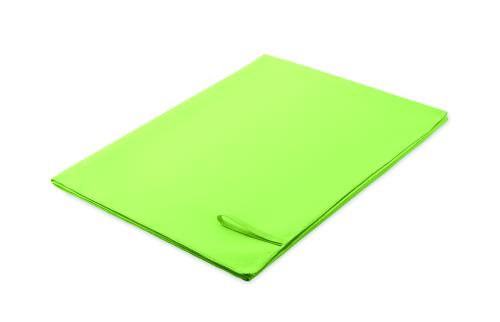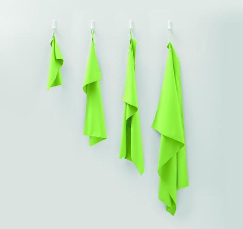 Microfibre towel made of 90% polyester and 10% polyamide with elastic hanger loop. Lightweight and quick drying. Size 100 cm x 150 cm.
