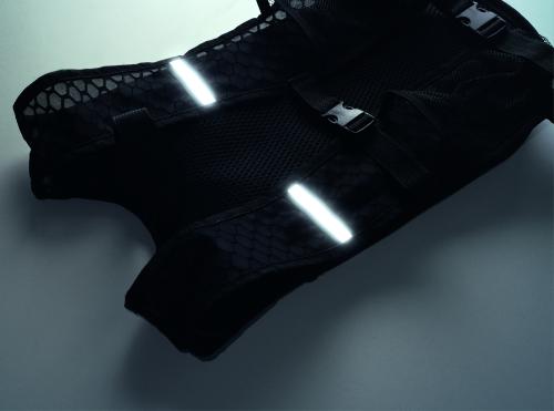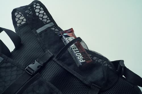 Sports backpack made of water-repellent 420D PU/nylon with mesh details. Includes a 1500ml EVA water container with PVC tube and lock. Lightweight, durable, and perfect for outdoor activities.
