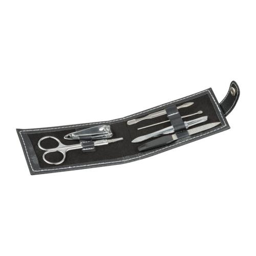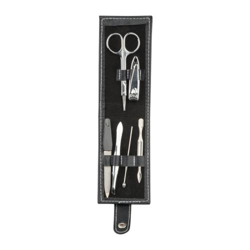 High-quality leather manicure case with stainless steel cutlery and diamond nail file, 7 pieces.
