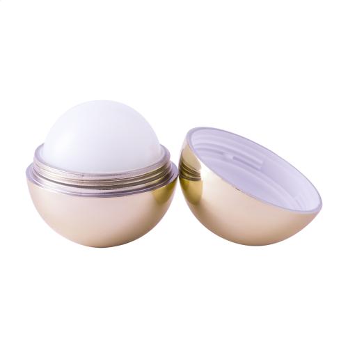 Round shaped lip balm in metallic colour holder, with SPF15 protection.