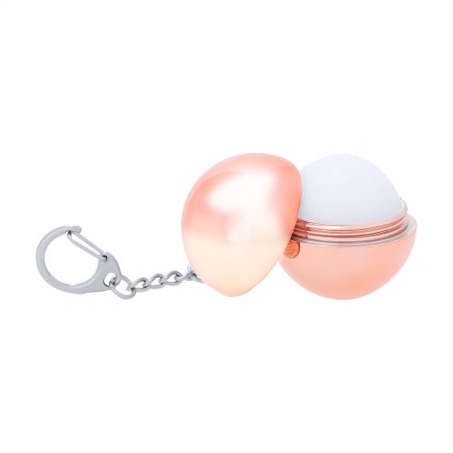Round shaped, vanilla lip balm in metallic colour holder with metal keyring. With SPF15 protection.